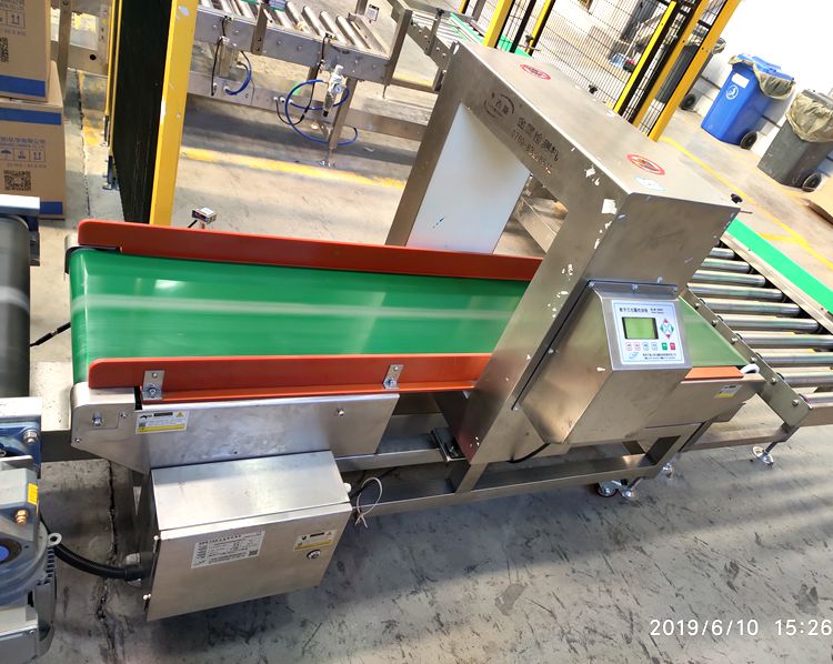 連之新DLM-509Y2010型金屬檢測(cè)機(jī)使用現(xiàn)場(chǎng),有金屬的物品可以做到自動(dòng)檢測(cè)并剔除。
