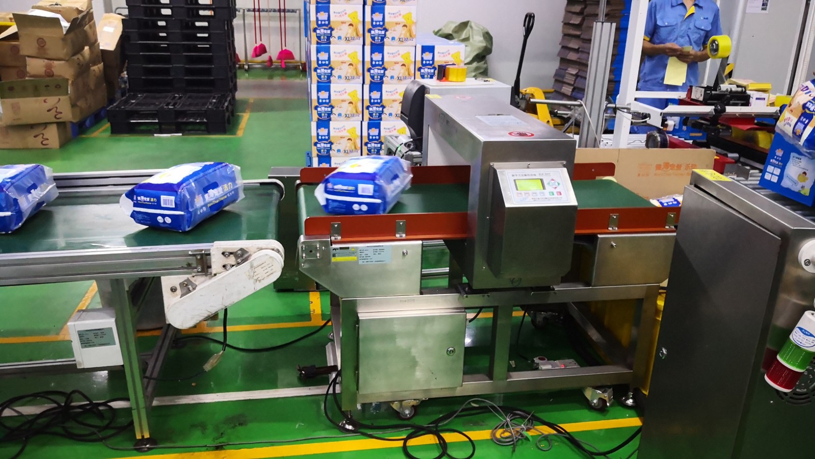 廣州某氏紙業(yè),旗下品牌泰迪熊,是一家大型紙尿褲品牌生產(chǎn)廠商,使用十多臺(tái)連新牌金檢機(jī)對(duì)旗下所有紙尿褲產(chǎn)品進(jìn)行金屬檢測(cè)質(zhì)量把控,尿不濕金屬探測(cè)機(jī)選連之新!