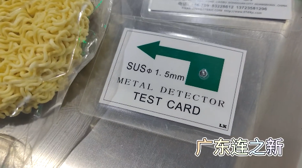 當(dāng)有方便面通過廣東連之新金檢機(jī)時,機(jī)器鳴叫,紅燈閃爍,證明含有金屬。