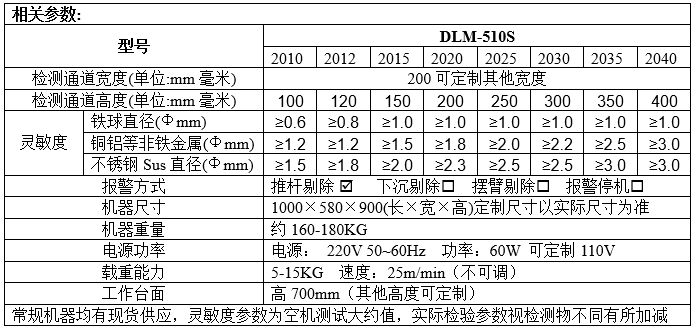 產(chǎn)品名稱:DLM-510S觸屏式全金屬探測(cè)機(jī)200系列是一款數(shù)字式金屬檢測(cè)機(jī),用于檢測(cè)非金屬材質(zhì)瓶裝產(chǎn)品中常見的金屬異物,采用歐美及食品標(biāo)準(zhǔn)設(shè)計(jì),整機(jī)設(shè)計(jì)符合食品機(jī)械要求,適合連接流水線檢測(cè)作業(yè)。